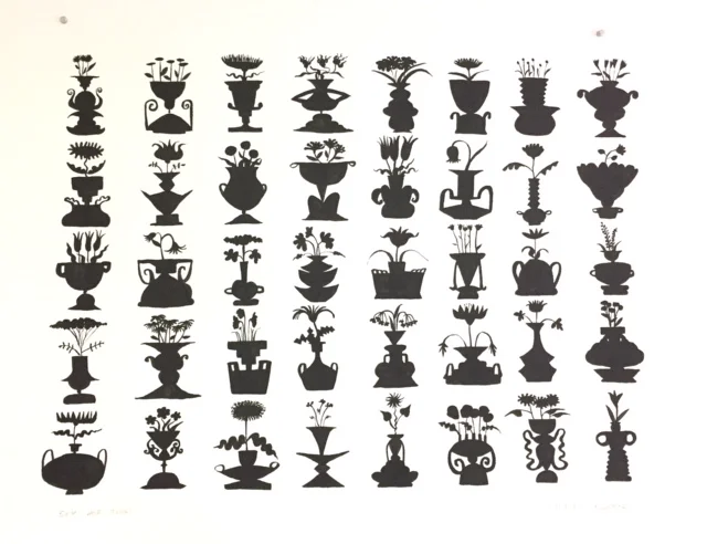 This is a large vase and flower study, pen and ink on paper. 40 images on 36" x 22" paper.
